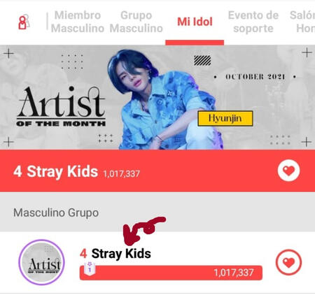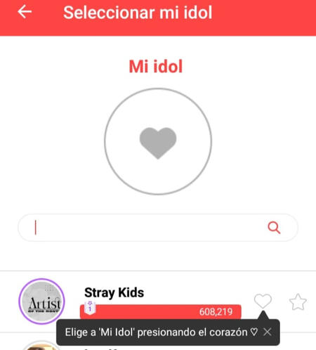 Te vas a dirigir en donde dice 'Mi Idol' en seguida darás click encima de 'Stray Kids'