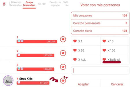 Vas a votar con tus corazones diarios por lo que vas a escoger "Daily All"